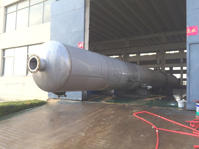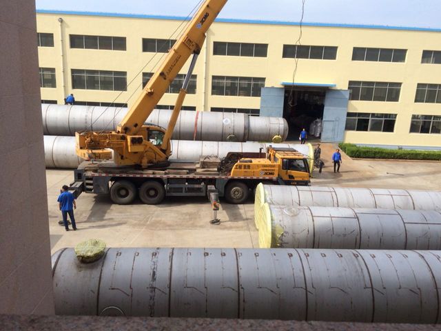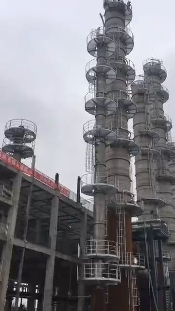 酒精蒸馏塔安装进行中
